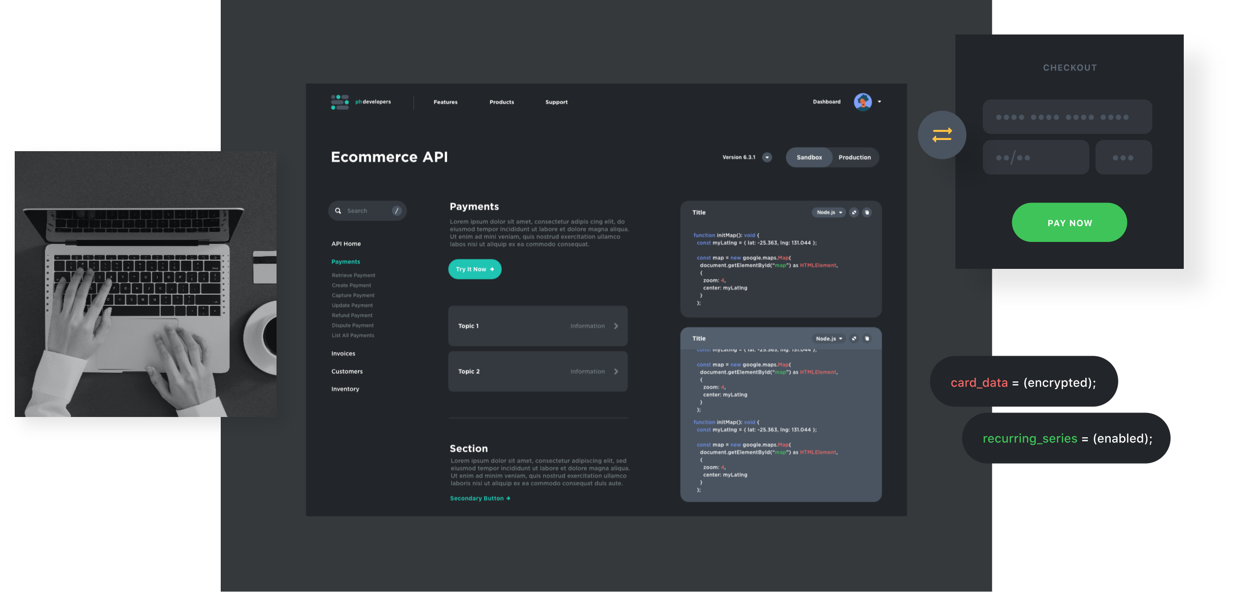 You build your product; Payanywhere powers the payments. Create unique payment experiences on your website or in your app. Plug into a complete payments ecosystem with just a few lines of code.