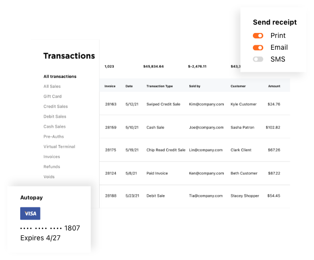 Provide customers with digital or printed receipts while maintaining a customer directory.